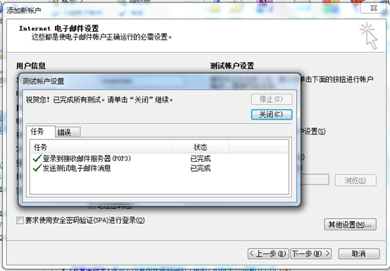 點擊“下一步”,系統(tǒng)會自動進(jìn)行檢測,成功后顯示界面如下。然后點擊“關(guān)閉”即可完成設(shè)置。
