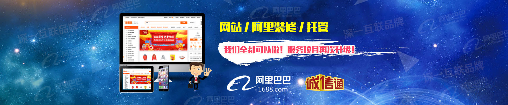 為更好的回饋和服務(wù)新老客戶,深一增值業(yè)務(wù)----阿里裝修托管全新上線;即日起,網(wǎng)站+阿里裝修+店鋪托管,我們?nèi)伎梢宰隼玻I(yè)的事,交給專業(yè)的團(tuán)隊,只需您一個電話400-666-2014 深一幫您全搞定!
